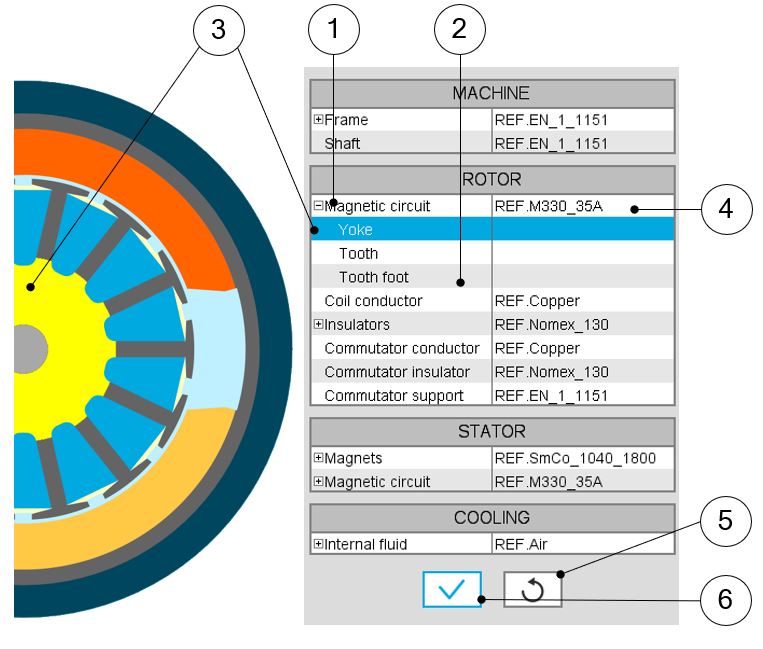 Expand the section dedicated to the magnetic circuit. Different materials (LAMINATION type or SOLID type) can be assigned to it. |