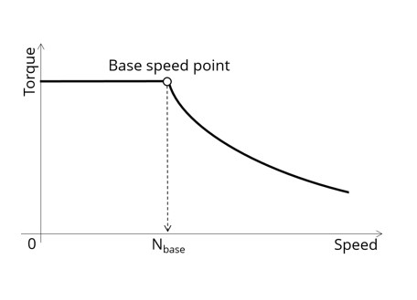 - If we want to impose the mechanical power obtained at the base speed point, we are able to deduce the bound at high speed. We called this point the reduced maximum speed point (Blue point on the previous figure).