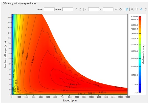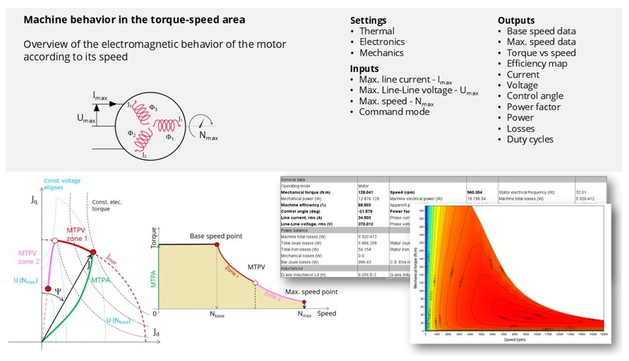 - Machine performance at the base speed point, at the maximum speed and at a user working point