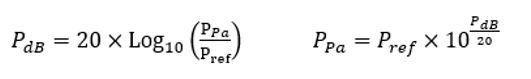 Considering this referent value P ref , one can compute any Maxwell pressure value P Pa (expressed in Pa) from the ones expressed in Decibel P dB .