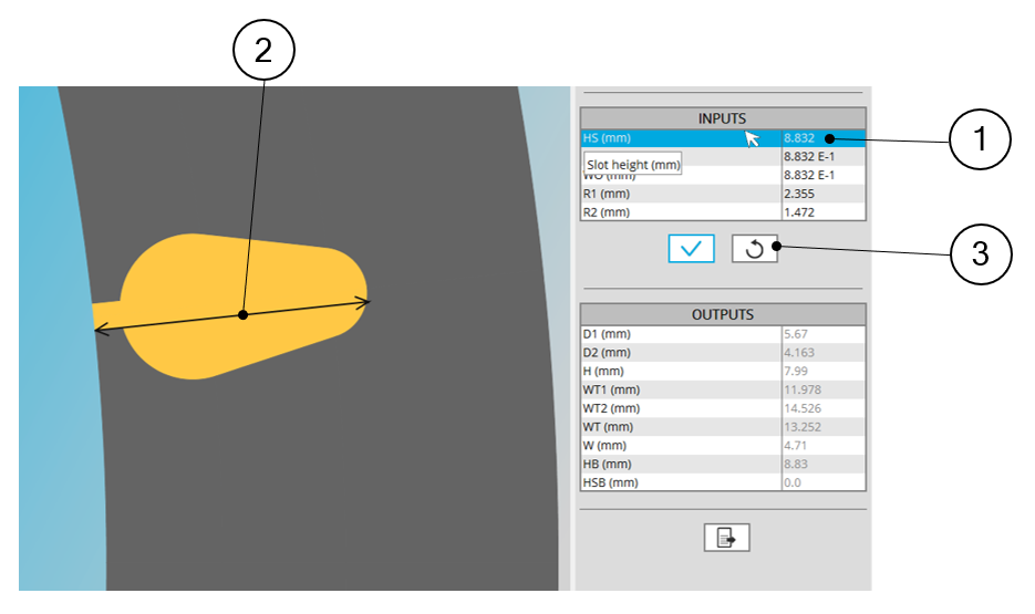 | Selection of a parameter label displays the corresponding arrow on the picture. | |