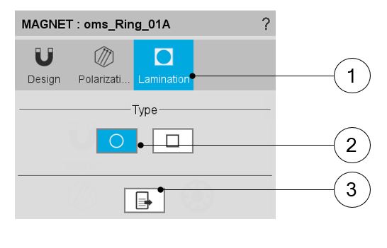 | 3 | Icon to export lamination data into *.txt or *.xlsx files. |