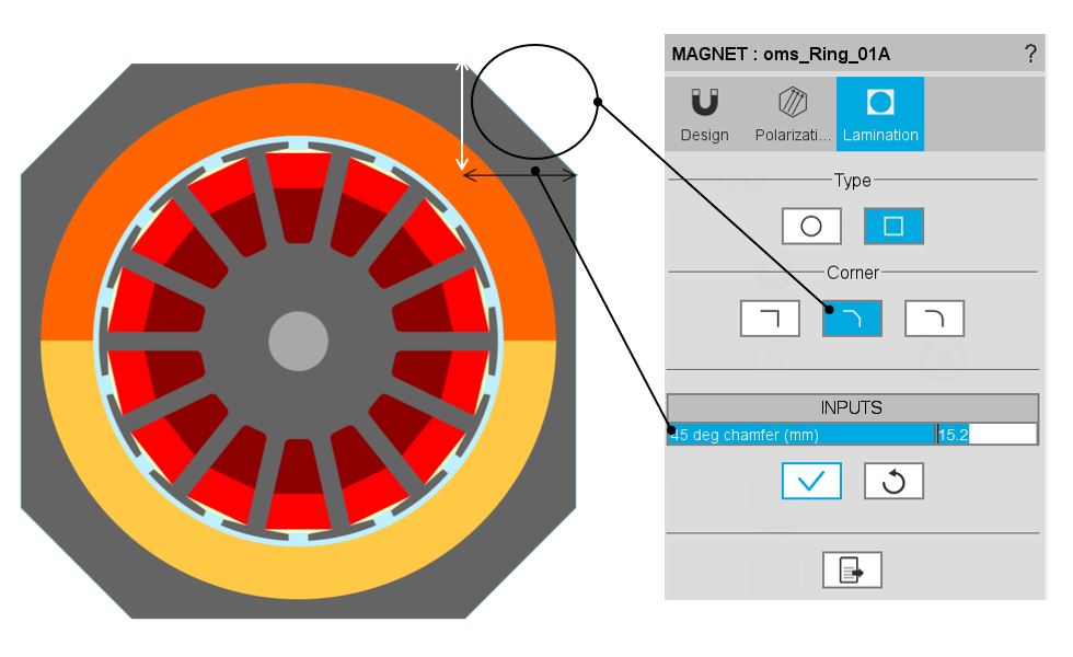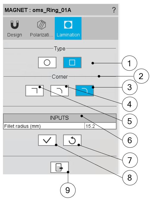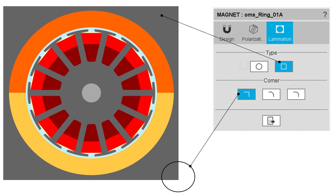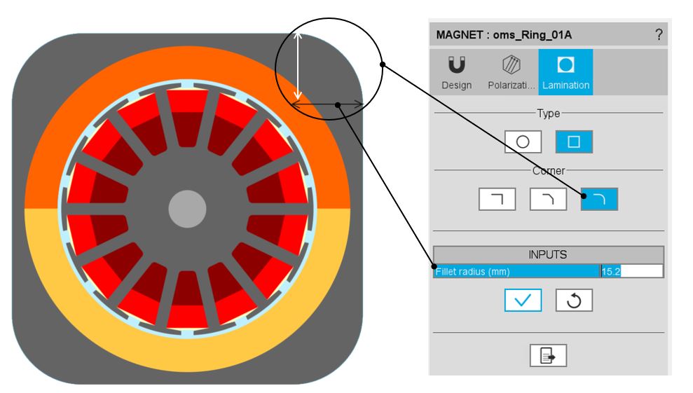 Square shape lamination with fillet corner Setting of the lamination fillet radius |
