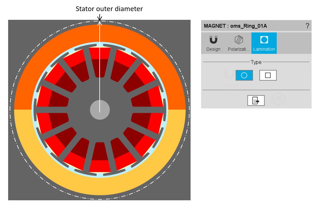 By default, the outer shape of the lamination is defined by considering the outer diameter of the stator (defined in structural data).