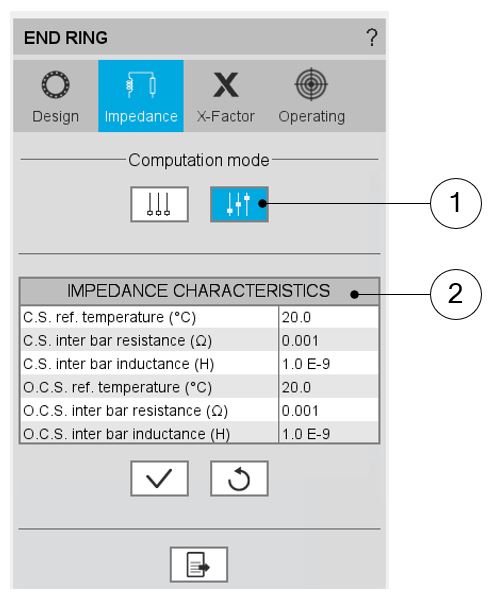 When constant computation mode is set, the inter-bar end-ring resistance and inductance values must be set by the user. The values are given for a reference temperature.