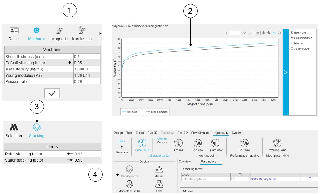 In the current version of FluxMotor, major improvements have been made for the material management. It is now possible to use the multi-segment model to describe lamination and adjust the stacking factor of that lamination within the design environment of FluxMotor. These improvements are promising to bring the user experience to a higher level in FluxMotor, more accurate and more flexible.