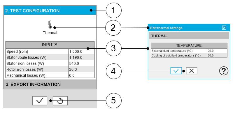 | 4 | Buttons to validate or cancel thermal settings. |