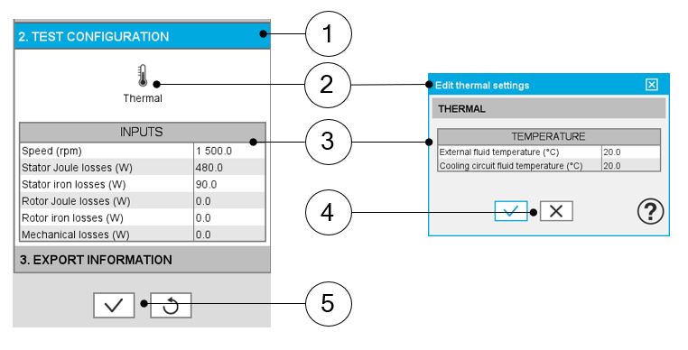 | 4 | Buttons to validate or cancel thermal settings |