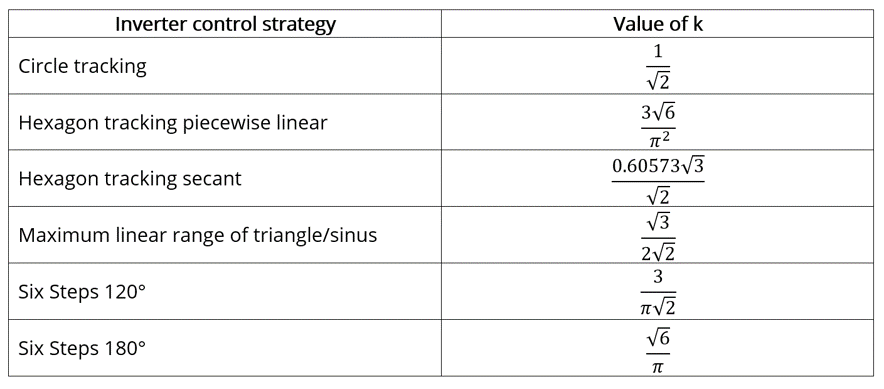 The considered inverter control strategies and their corresponding values of k are listed in the table below.