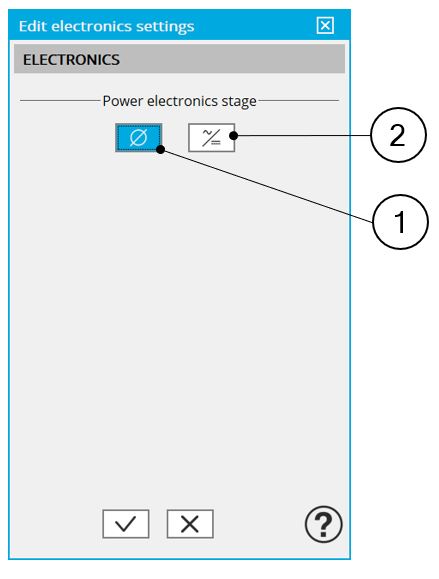 | 1 | Button to not consider power electronics stage (=default mode) |