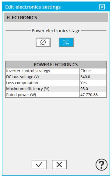 When available, the selection of the “Power electronics mode” gives access to a dedicated list of user input parameters.