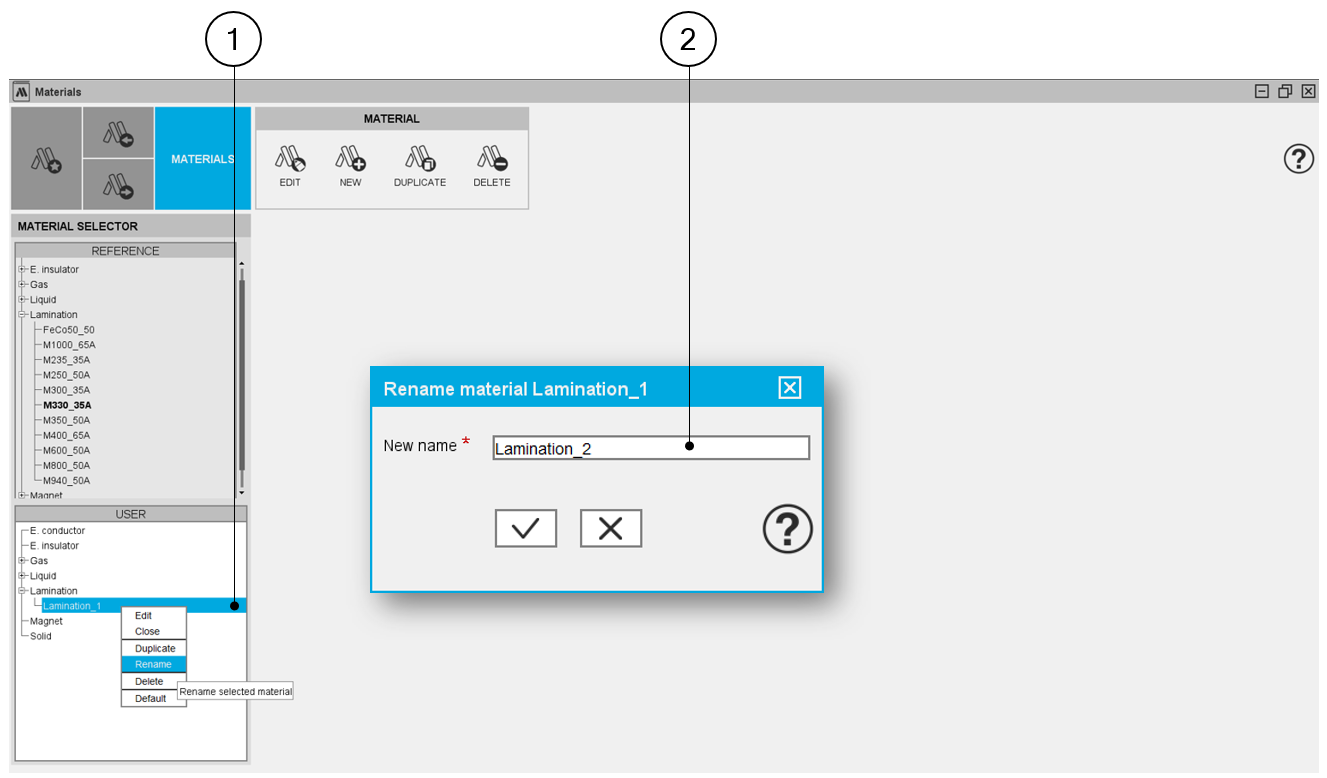 | 1 | Click on the material label you want to rename (click on the right mouse button) |