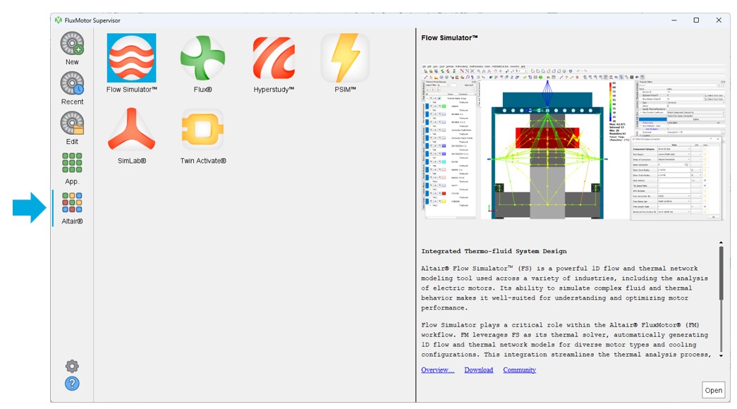“Altair®”: A dedicated section to give access to Altair solutions that are needed and complementary for FluxMotor like: