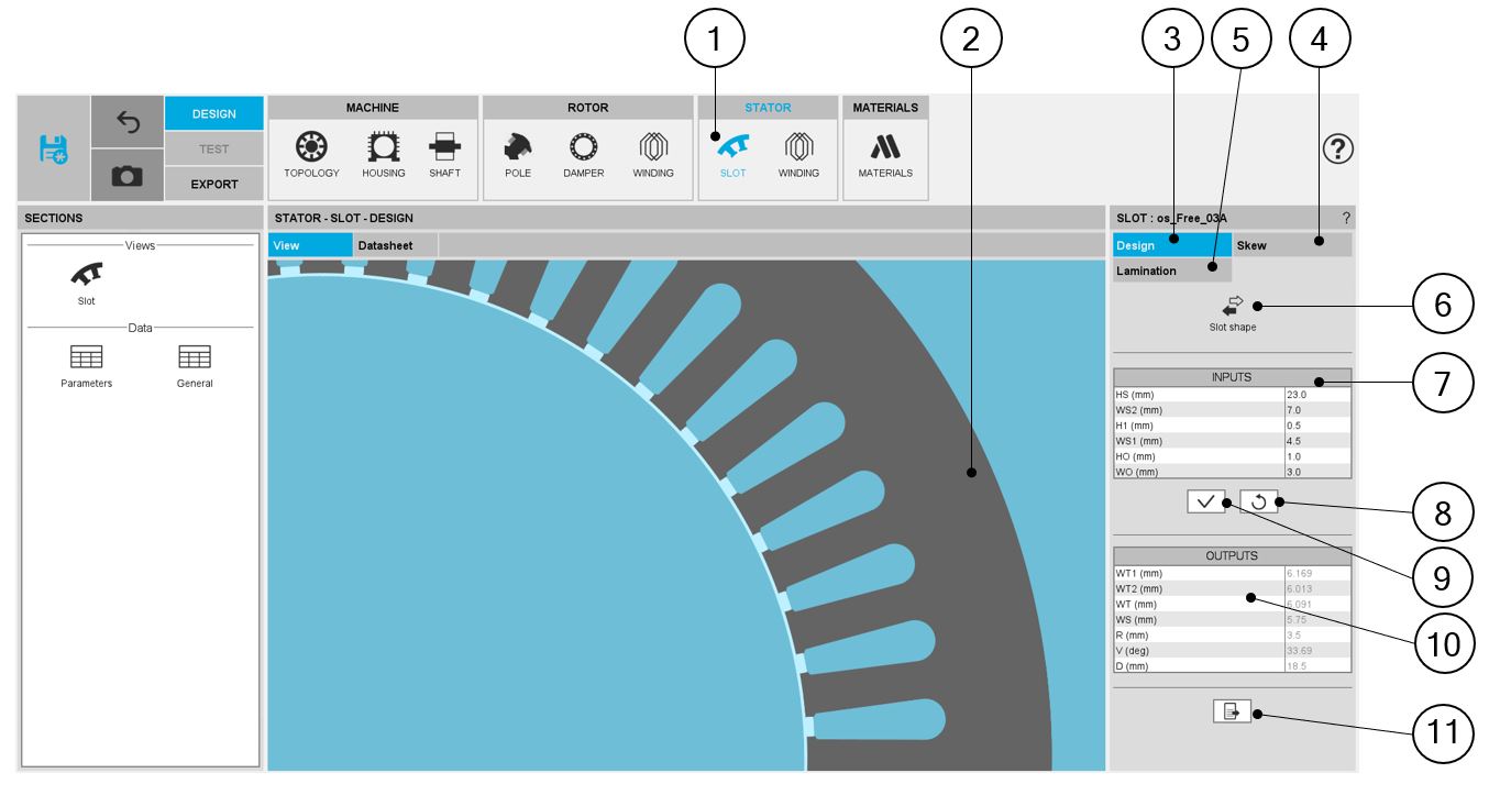 | 4 | SKEW tab indicates the tools to define the slot skew angle |