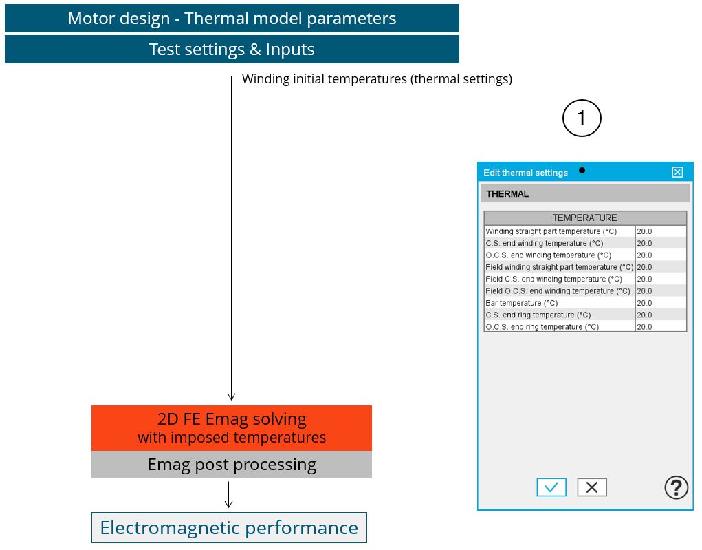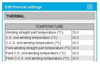 You can define the winding temperatures, bar and end ring temperatures or define the physical properties of the materials needed to run the tests without any thermal computation.