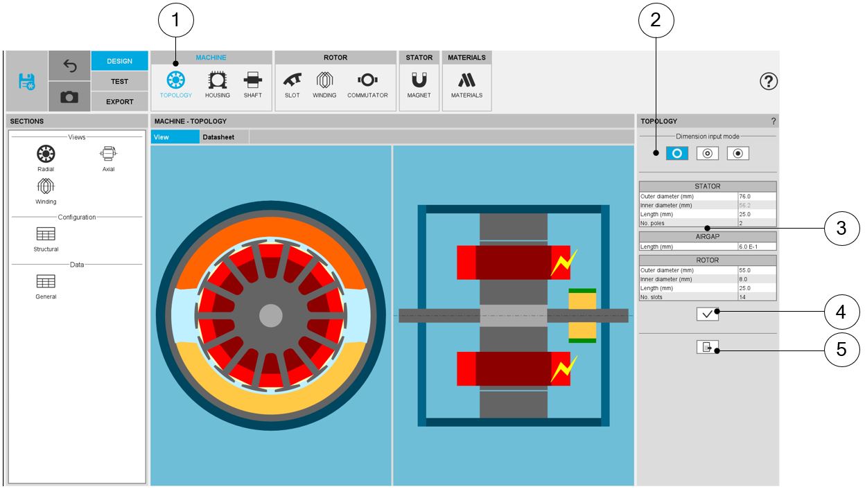 The first step of the design consists of defining structural data of the machine.
