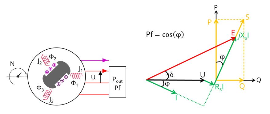 The main user input parameters are the choice of the convention and the operating mode, then the output power/apparent power, the power factor (lead/lag), the speed and the line-line voltage. In addition, the temperatures of the windings must be set.