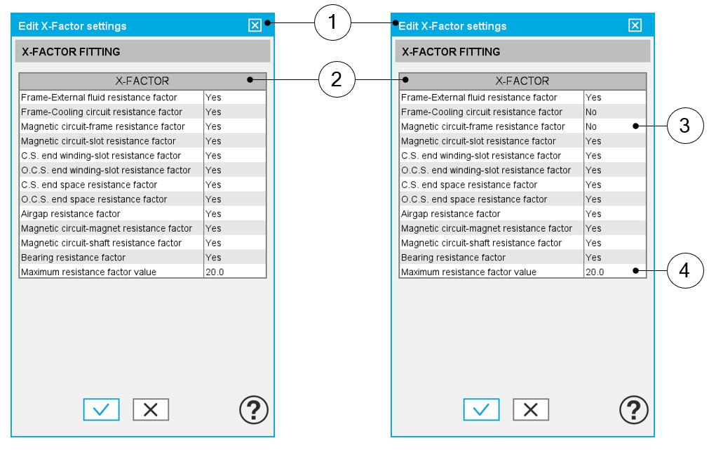 | 3 | Set the value to No when the corresponding X-Factors must not be considered during the process. |