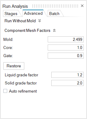 Select the Advanced tab to manually select mesh factors
