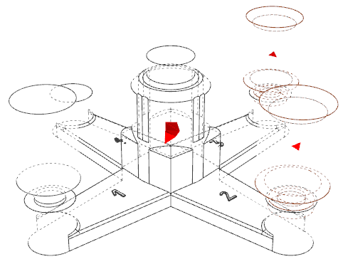 Click the center of the end of the first arm to create a riser and leave the