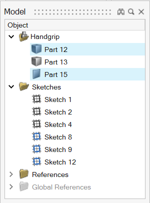 Tip: Select a part in the Model Browser to quickly select all of its entities. Hold Ctrl or Shift to select multiple parts.