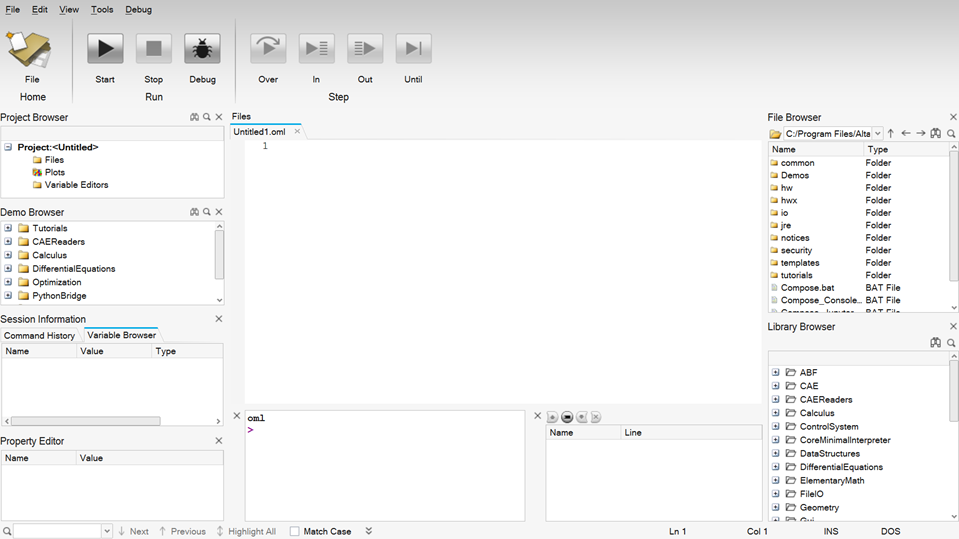 This launches Compose. Notice that by default, a file named Untitled1.oml exists in the Editor window.