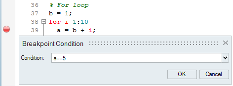 This opens a dialog box for specifying the break condition.