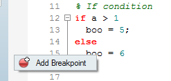 A breakpoint is added to the debugging session by left-clicking in the margin