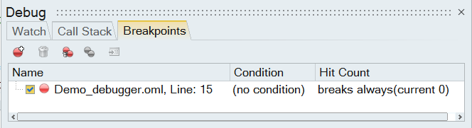 This opens a new tab in the Editor window titled Demo_debugger.oml. This tab is now the active tab, indicating that this file is the active file.