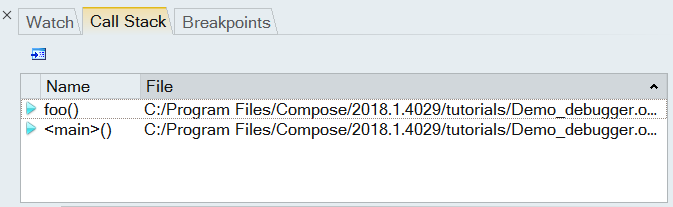 Click the Call Stack window tab.
