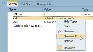 Right-click in the Watch window