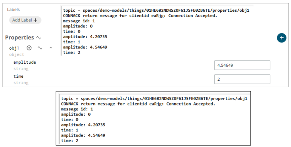 host = 'mqtt.swx.altairone.com'; port = 1883; space = 'demo-models'; thing_id = '01HE682NDWSZ0F61JSFE0ZB6TE'; property = 'obj1'; topic = ['spaces/' space '/things/' thing_id '/properties/' property] -