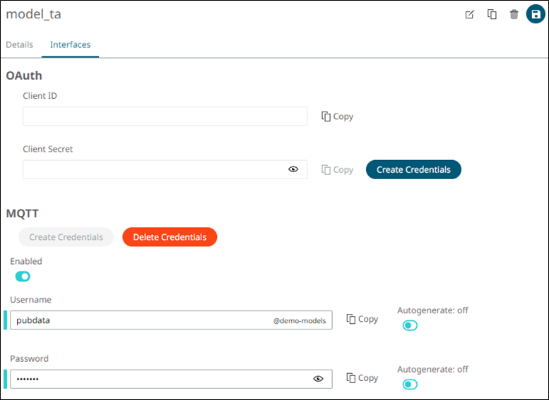 To set the MQTT credentials on IoT Studio, select .