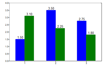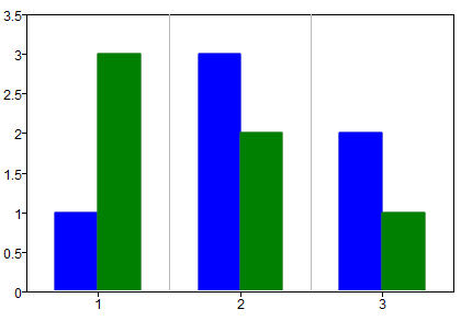 a=bar([1 2 3], [1.5 3.50 2.75; 3.1 2.25 1.8]);