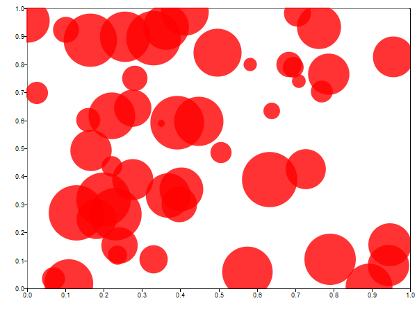 b = bubblechart(x, y, s, 'markerfacecolor', 'r', 'markerfacealpha', 0.8);