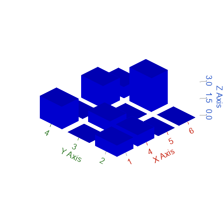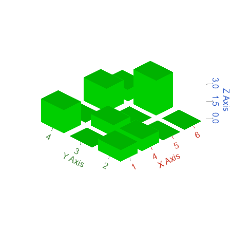 [nums, centerOfBins, h] = hist3(z, 'ctrs', {[1 4 5 6], [2 3 4]}, 'color', 'g');