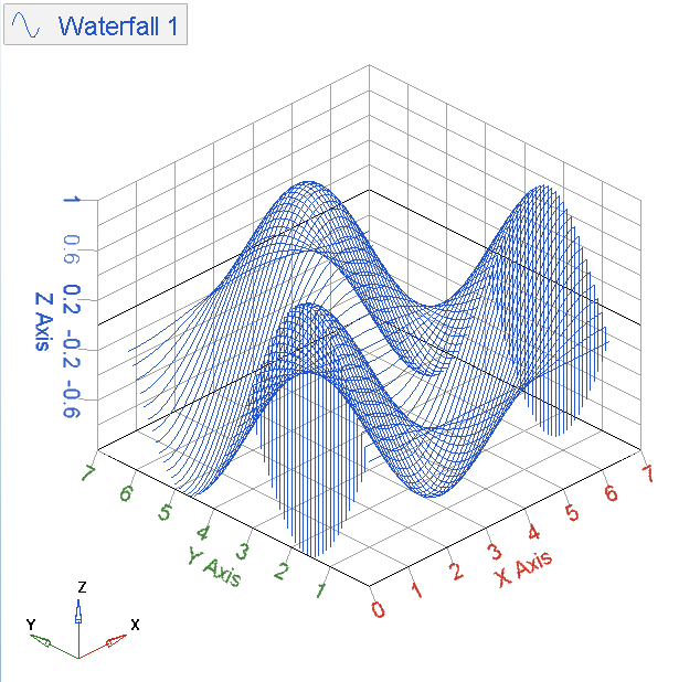 If there is no axes, one will be created first. If x and y are omitted, the index of the columns of z is used for x coordinates and the index of the rows of z is used for y coordinates. waterfall takes optional arguments to control the surafce style. It can be either the color of the meshes (not supported yet), or property/value pair(s), or both. If the first argument of waterfall is an axes handle, lines will be created in that axes.