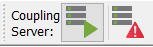The EDEM Coupling Server options are accessible from the top-right corner of the EDEM window.