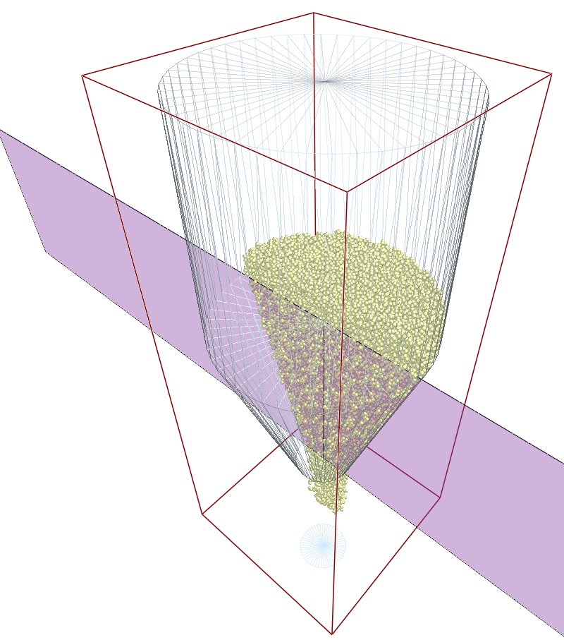 In the following example, the hopper includes a cylindrical periodic boundary with the angle set to 180 degrees.
