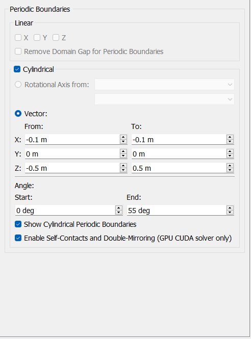 - Select the Cylindrical checkbox to enable the cylindrical boundary condition.