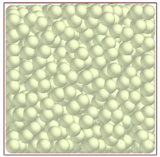 Note: The Volume Packing tool does not calculate forces based on overlaps, and creating material with very high overlaps could lead to a particle explosion once the forces are calculated in the Physics model.Figure 1. Volume packing with 70% volume fraction
