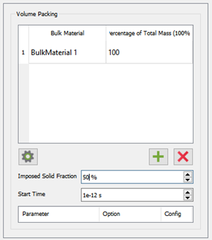 Note: The Volume Packing Configuration dialog box contains advanced settings that you can use to modify the Volume Packing behavior. The three major settings are Maximum Number of Iterations, Remove Particle Iteration and Remove Particle Overlap. A good analogy will be trying to pack flour in a jar by shaking it. A slower shaking process will pack the flour better compared to a fast and strong shake of the jar, which will often cause the flour to spill. - Click the