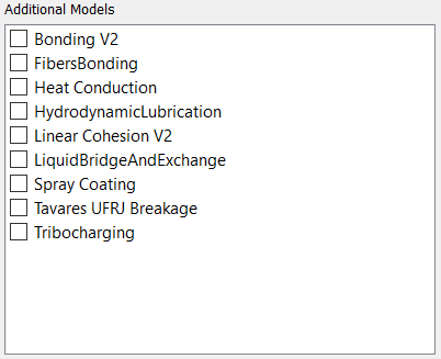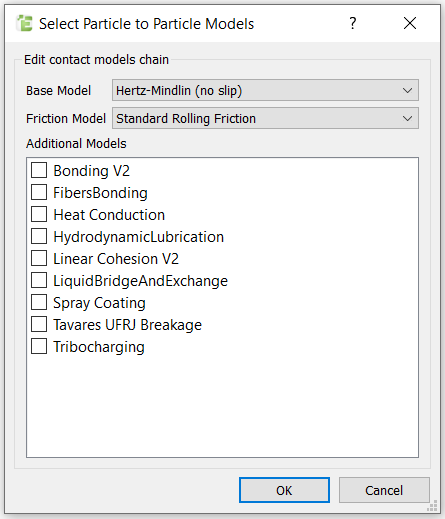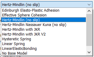 When opening simulation decks from an earlier release of EDEM (prior to EDEM version 2018.2), the Physics models used will be updated to the new format where they are divided into Base Model, Rolling Friction Model, and Additional Models.