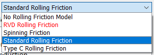 Note: If Rolling Friction or Base model is not required, (for example if an API model has been used), select the No Base Model or No Rolling Friction Model.If an API model has been used, use the arrow icons to move the Physics Model up and down the list.