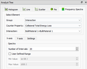 You can plot the counter custom properties as a spectrum of energy loss in EDEM Analyst. The results are maintained per material interaction.
