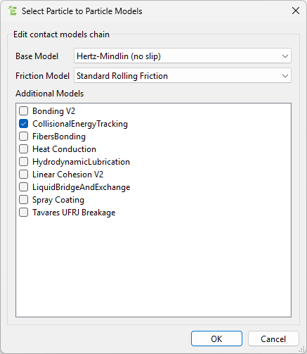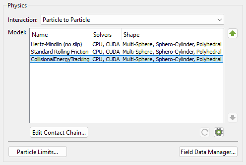 The Collisional Energy Tracking Model is a contact model that allows tracking of the energy dissipated in collisions during a simulation.