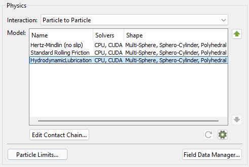 The Hydrodynamic Lubrication contact model simulates the effect of short-range