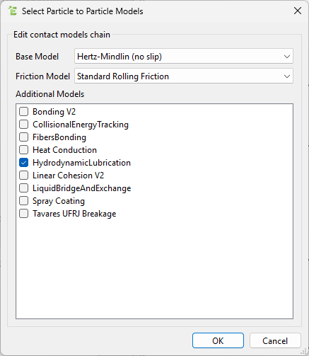 To use the Hydrodynamic Lubrication contact model, you must first add it to the