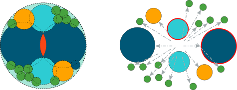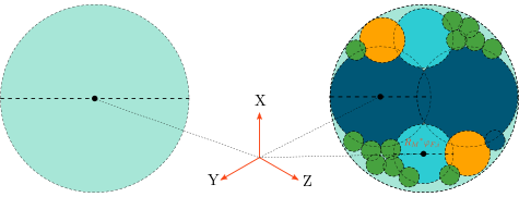 In order to resemble the outcome of a real breakage event, in which the fines are concentrated at the point of application of stresses, spheres inside the parent particle are arranged so that the largest fragments overlap in perpendicular direction to the stress that caused breakage. The remaining finer fragments are then arranged in the remaining voids, often overlapping with the coarser fragments.