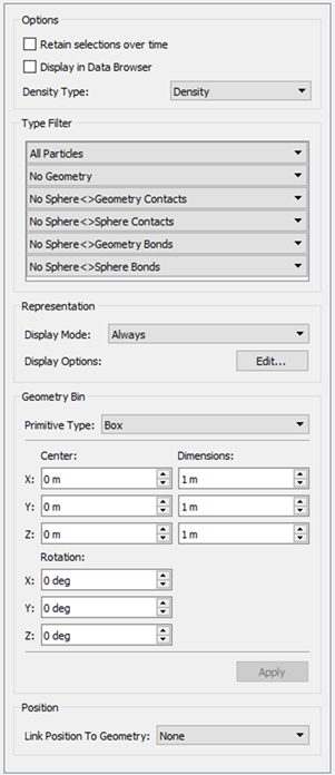 Density Type Select the density type attribute that you want to analyze from the dropdown list. Options are: Bulk Density or Solids Density.